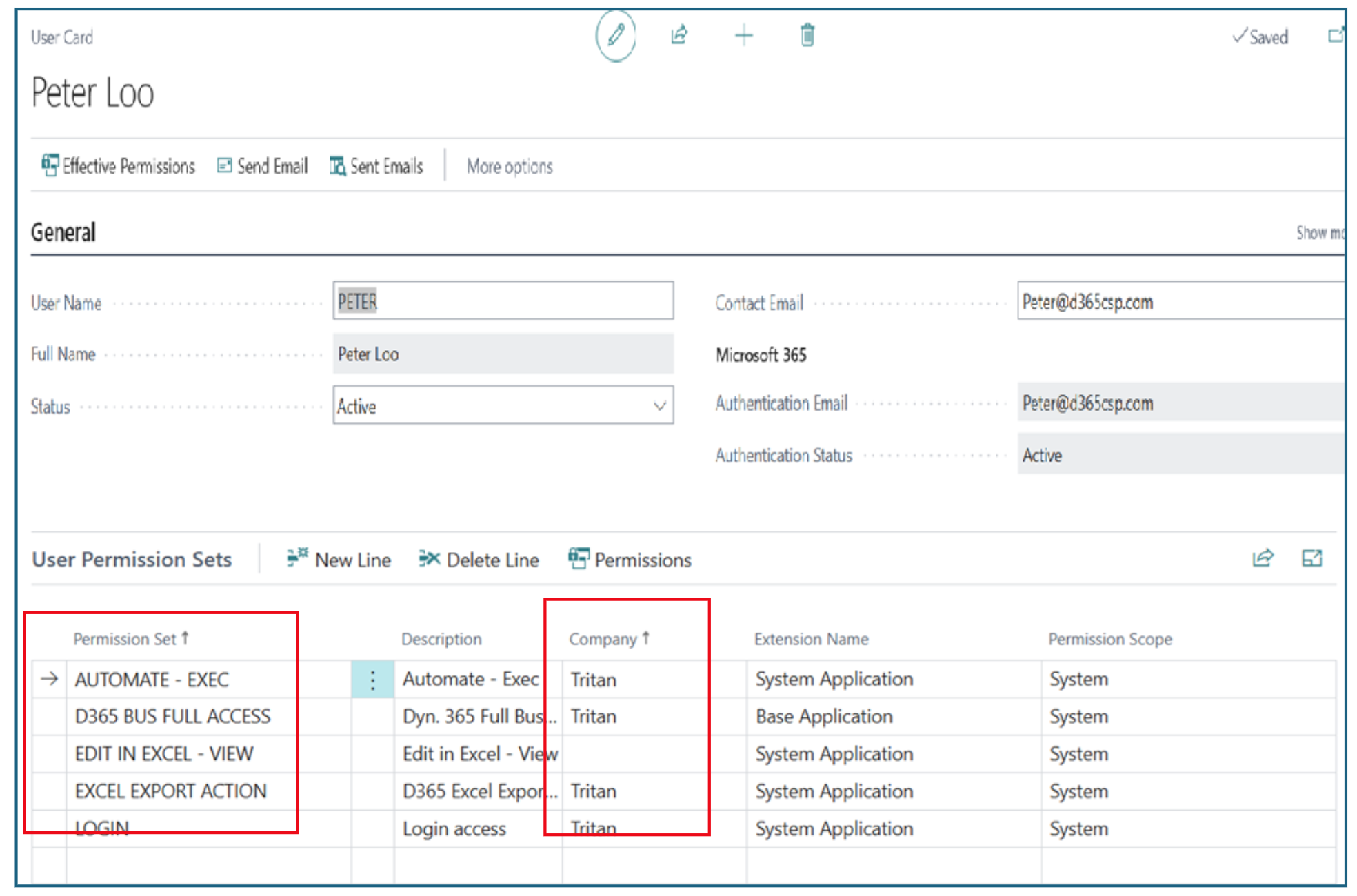 - Ensure that the following Permission Sets are selected for basic access to Business Central: