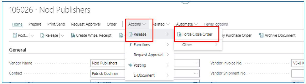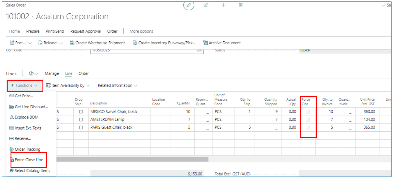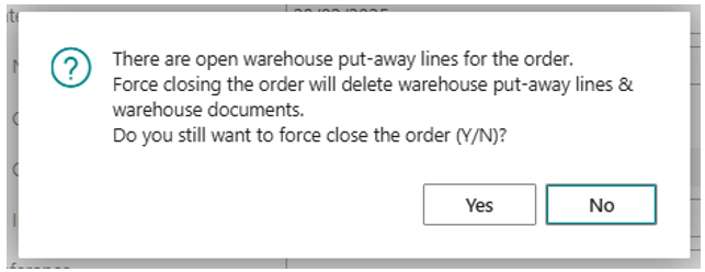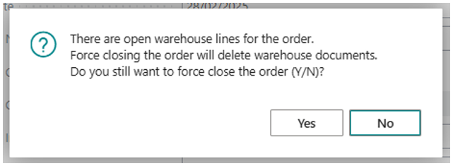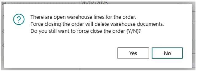Dynamics 365 Business Central Force Close Orders