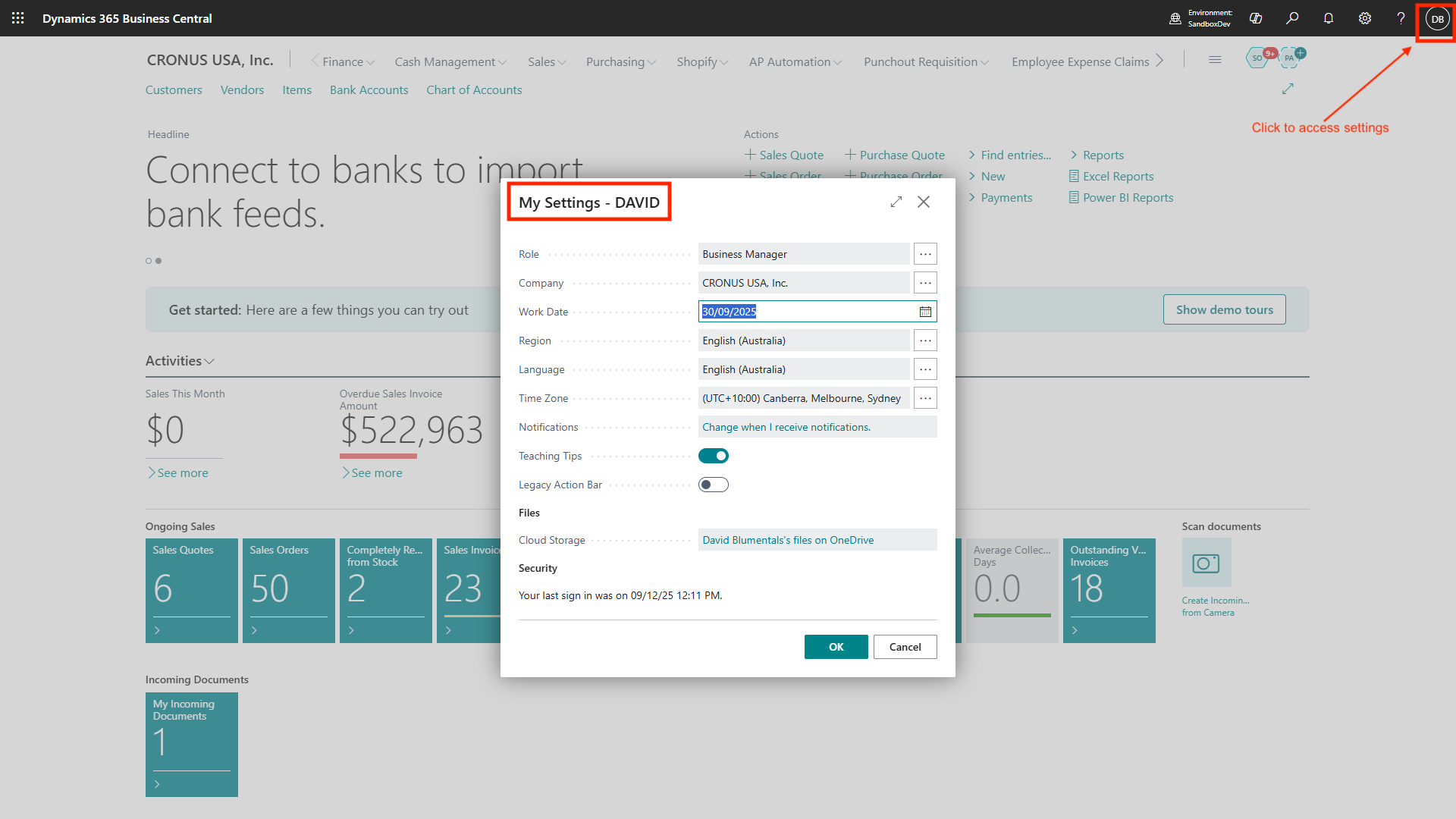Access My Settings by clicking your user icon (top-right).
