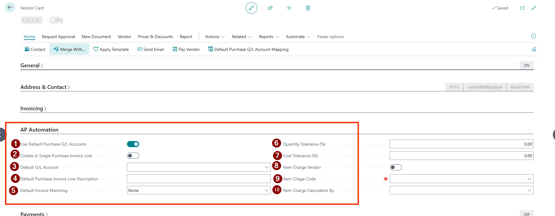 - On the vendor card, we have a new tab AP Automation which has following features
