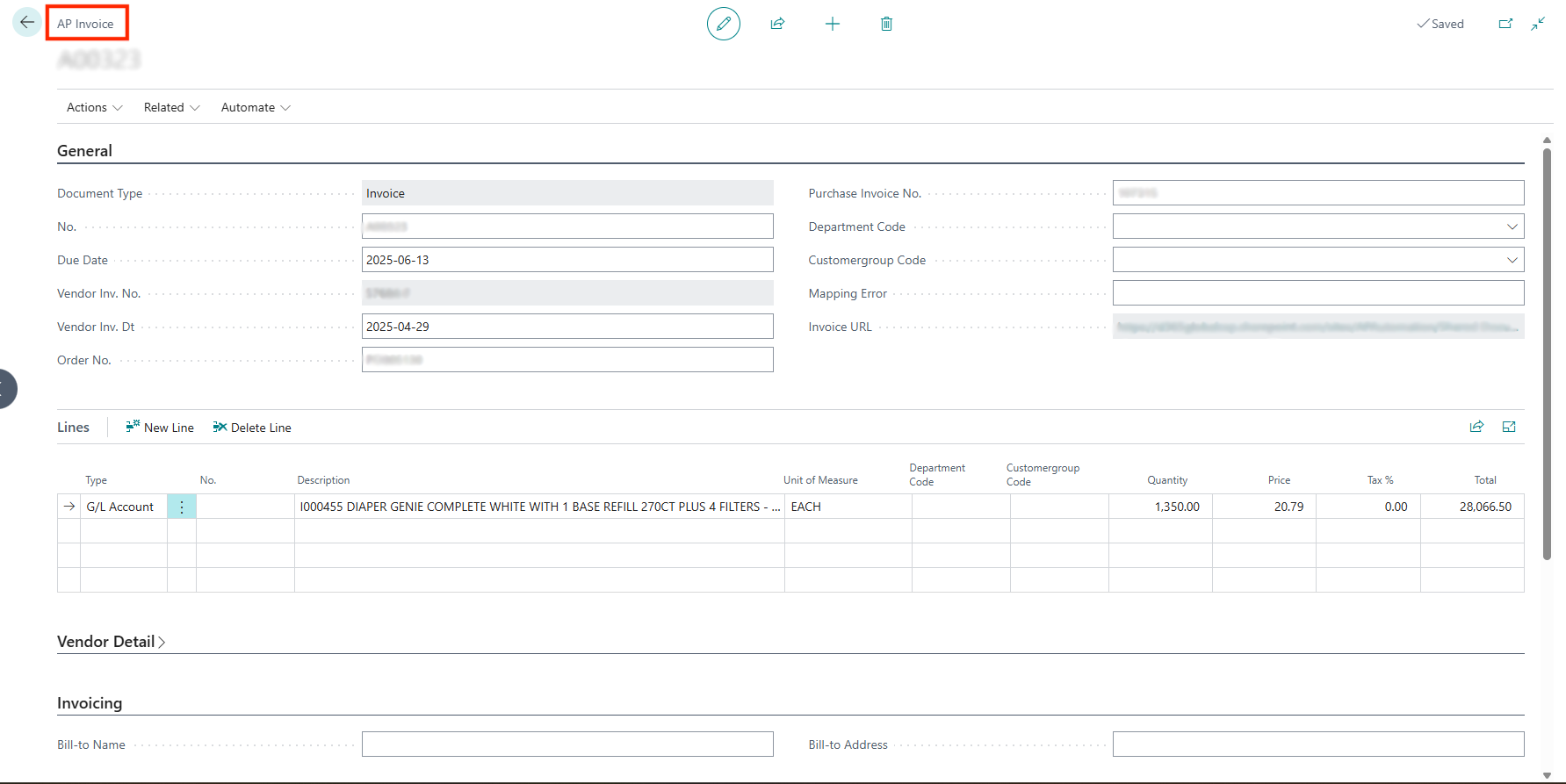 Pending Purchase Invoices List: Shows all invoices awaiting mapping, approval, or posting. Filter by vendor, date, or status. Use batch actions for bulk processing.