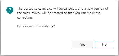 - A new sales invoice with the same information is created where you can make the correction. The Cancelled field on the initial posted sales invoice is changed to Yes. A sales credit memo is automatically created and posted to void the initial posted sales invoice.