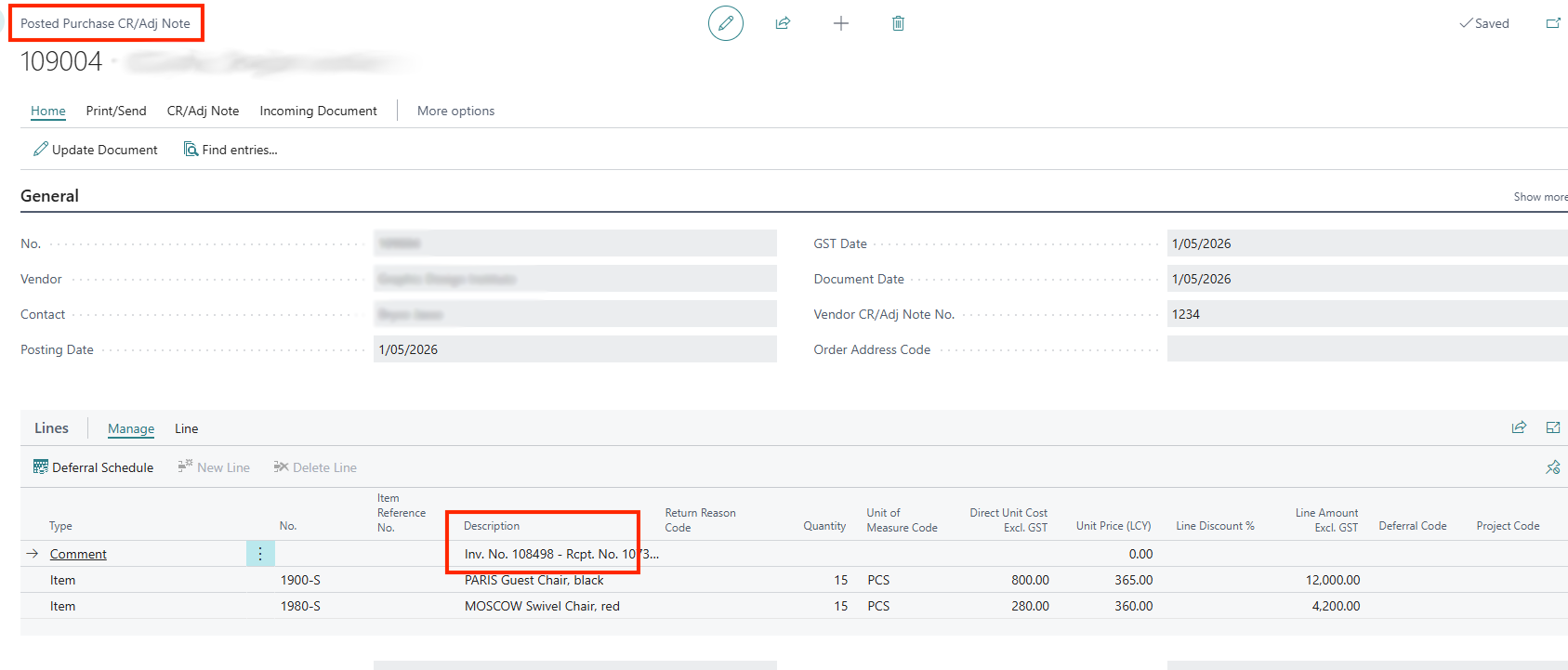 Once the Purchase Invoice is posted, Purchase Return Credit can be processed by correcting the Posted Purchase Invoice in full.
