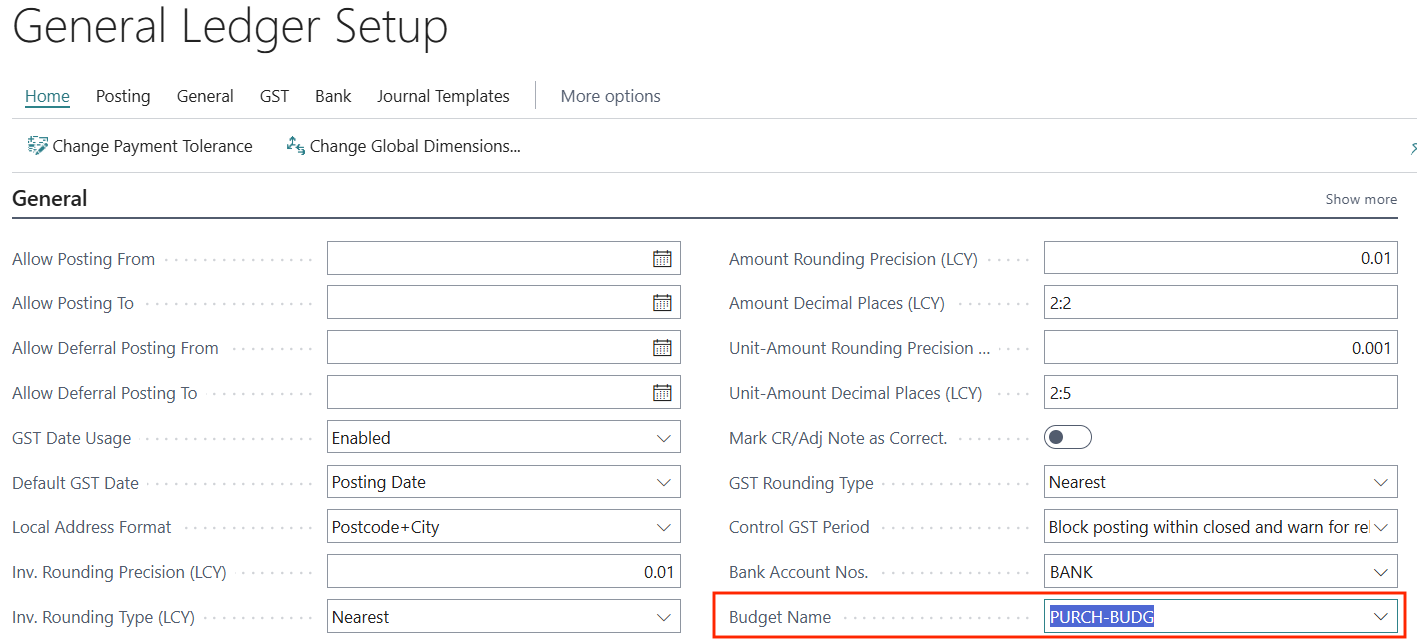 Purchasing GL Budget Control in Dynamics 365 Business Central