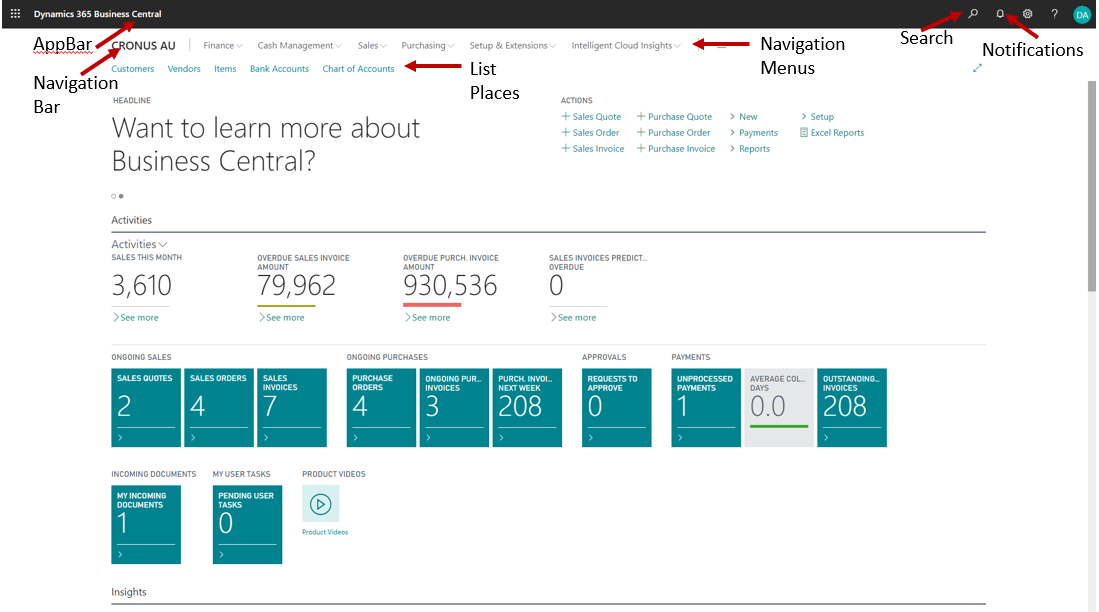 We will take a look at the main parts of the user interface (UI) in Dynamics 365 Business Central.