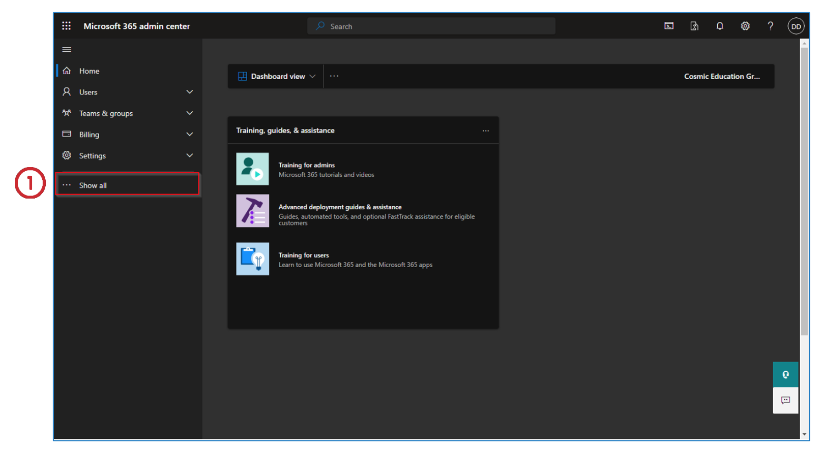 Under the Office apps, find Admin.