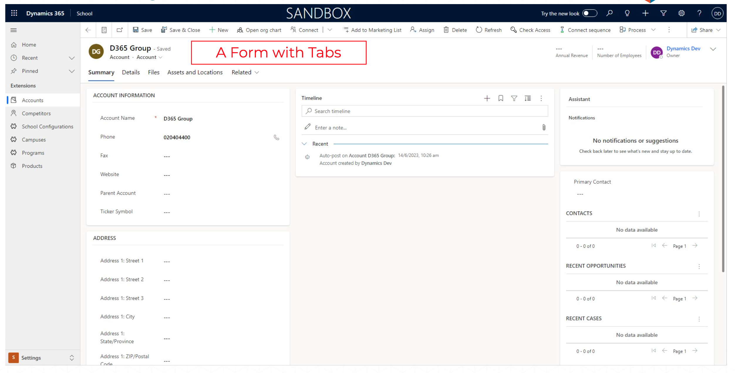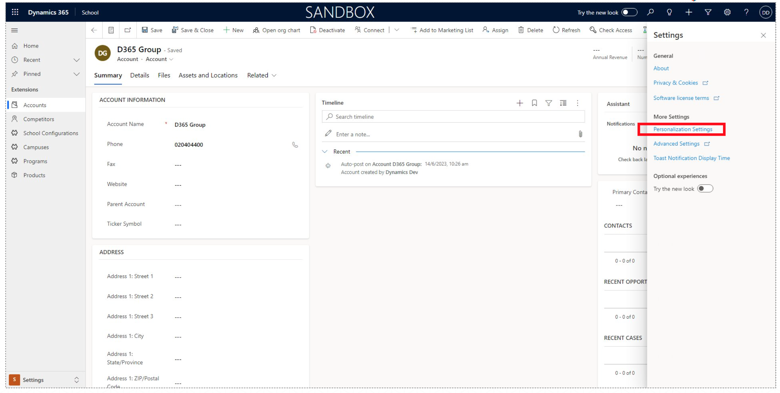 Admin For Dynamics 365 Education User Interface