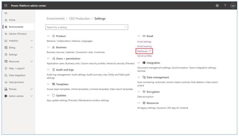 Mailboxes: Each user’s mailbox in Dynamics 365 needs to be configured and tested to use Server-Side Synchronization for incoming and outgoing email, appointments, contacts, and tasks.