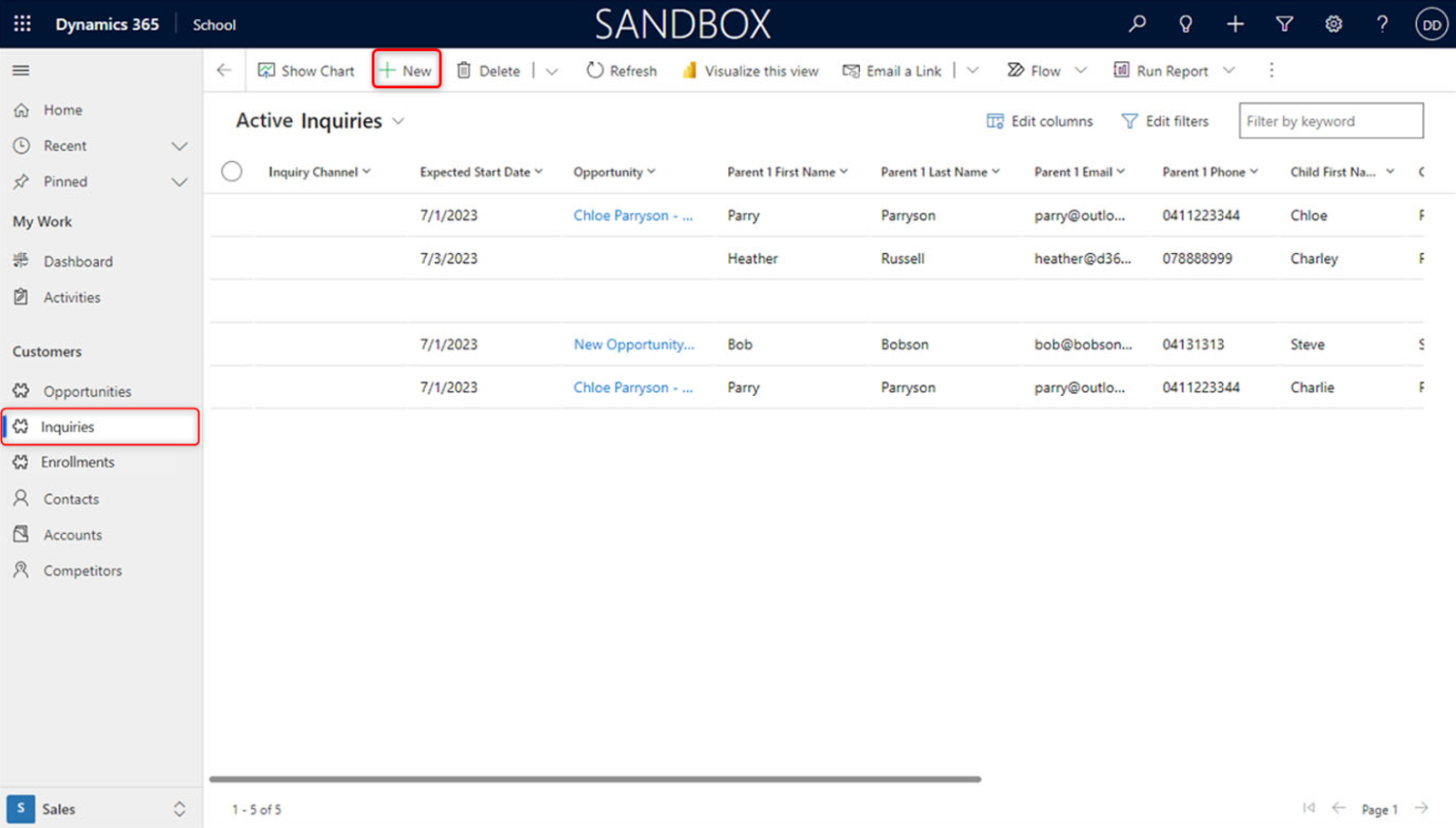 Create a New Inquiry Record: Click the + New button to open a blank form.
