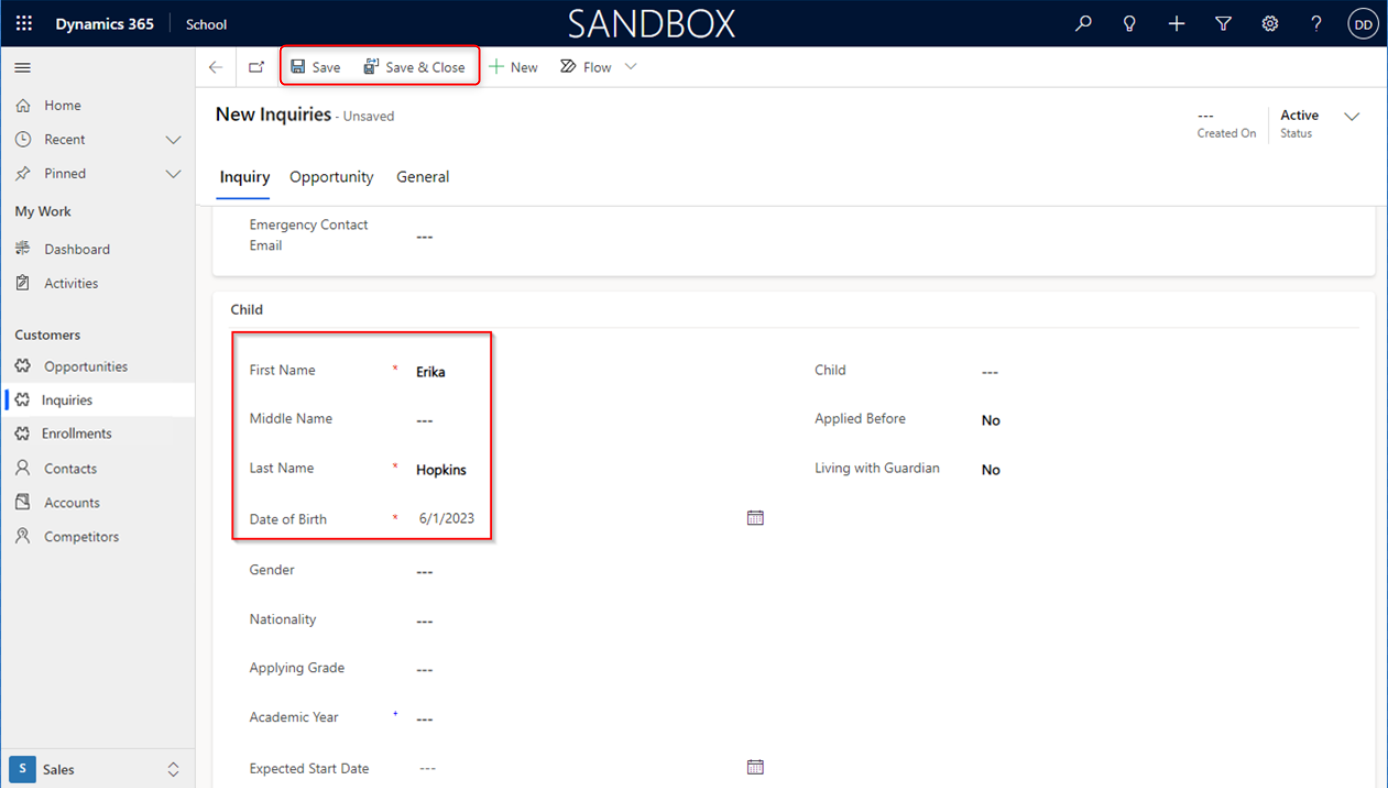 The Inquiry form data, including Child and Parent details, is seamlessly incorporated into the generated Opportunity, eliminating manual data entry and enhancing efficiency.