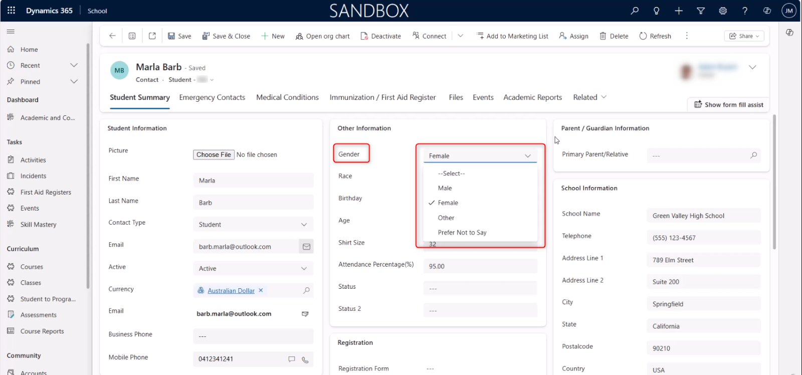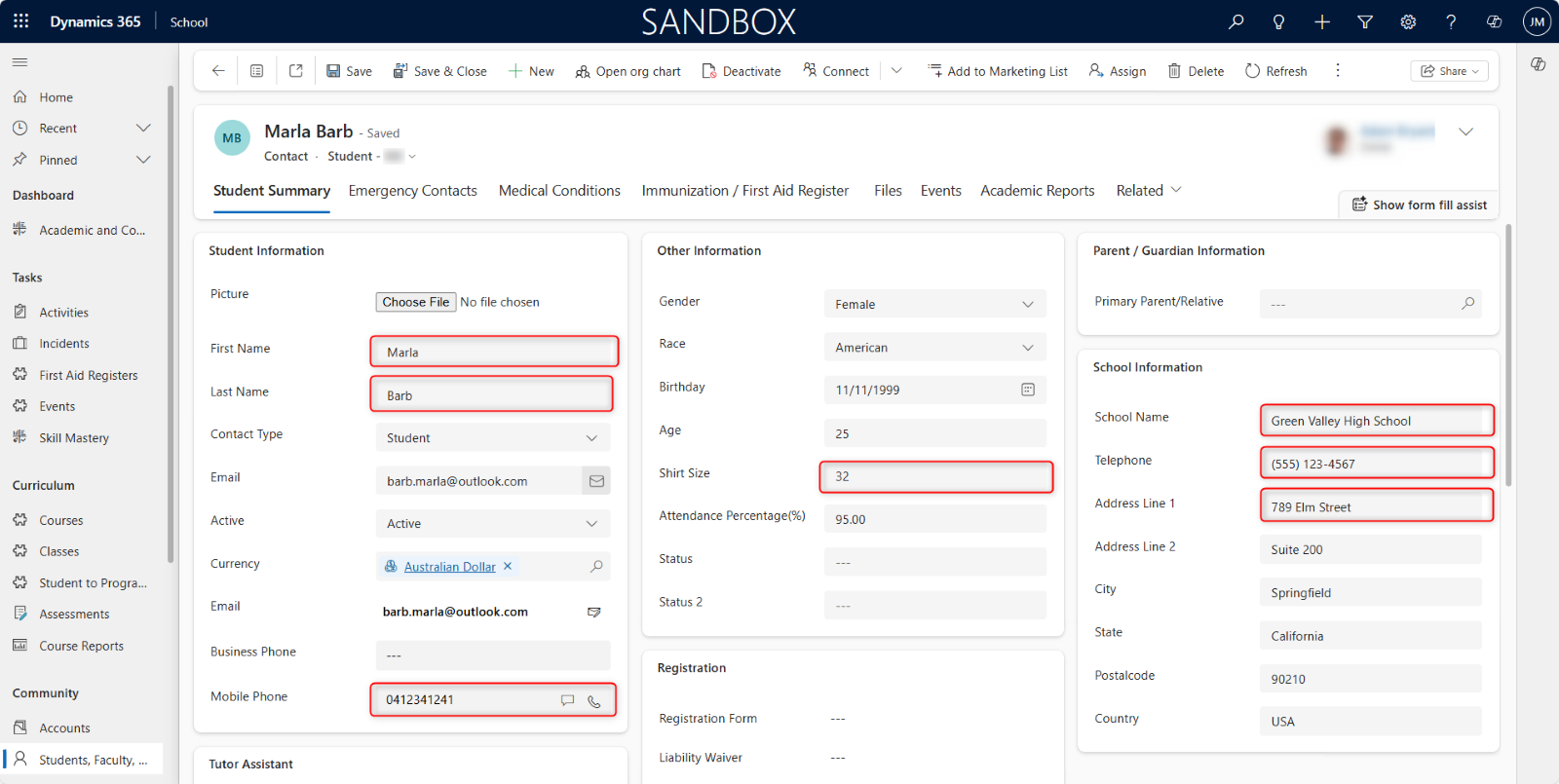 Text fields provide the data captured in Dynamics 365. From the text fields, the data is processed into the information made available for the School environment users.