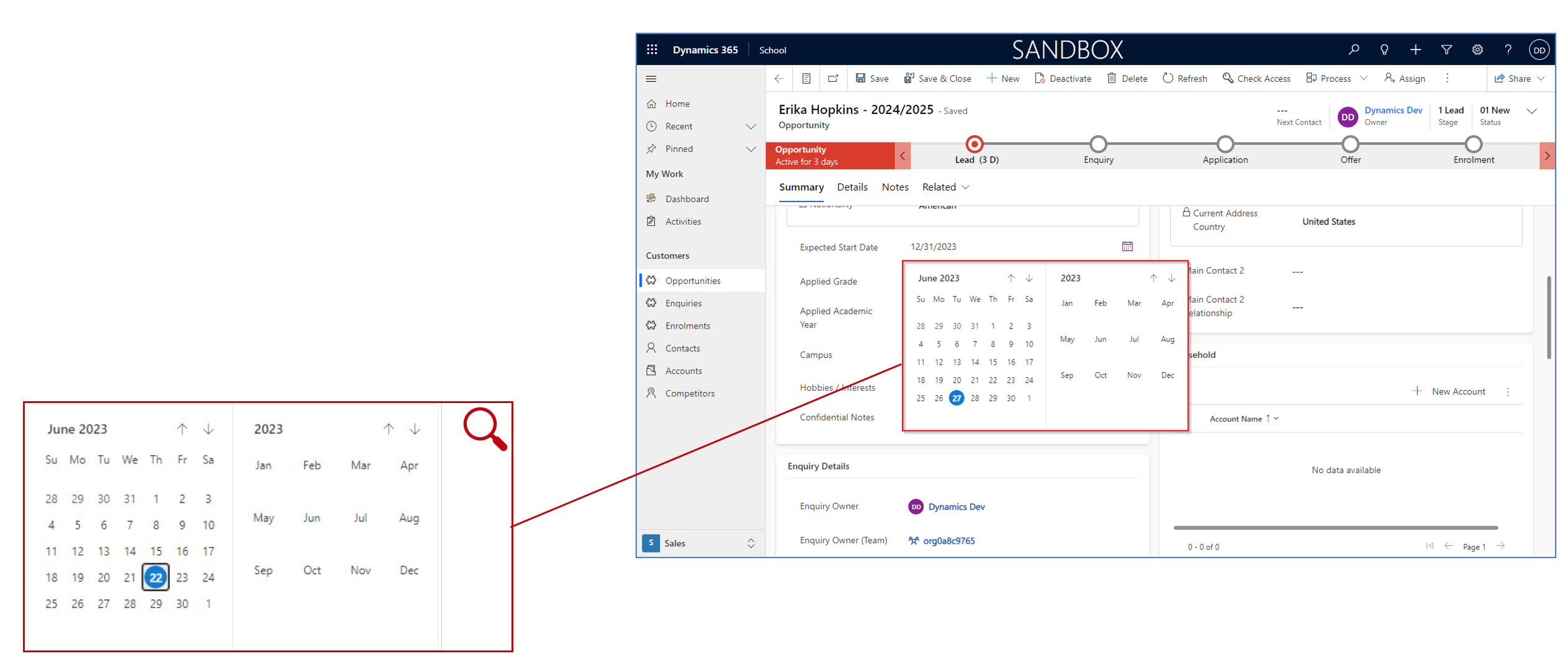 These are among the most common field types you will encounter when managing records like Contacts, Accounts, Opportunities, Inquiries, Enrollments, and any custom entities.