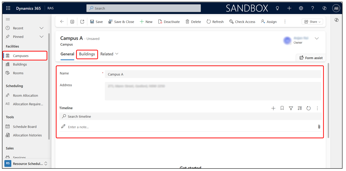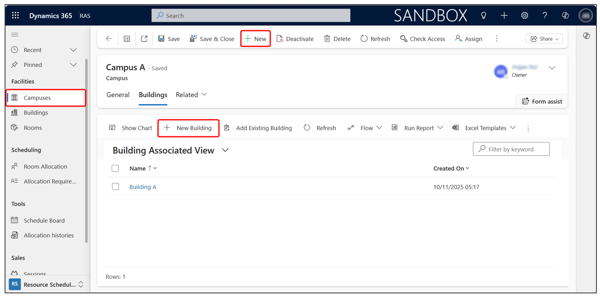 - Click + New from the top command bar to create a new building.