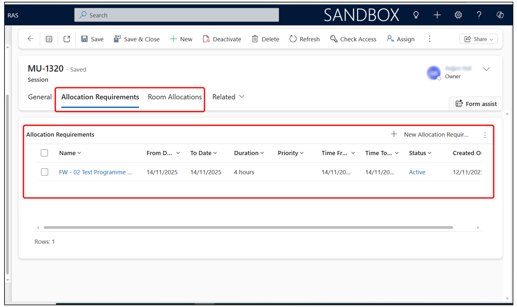 - A new allocation record will open, already linked to the session’s allocation requirement.