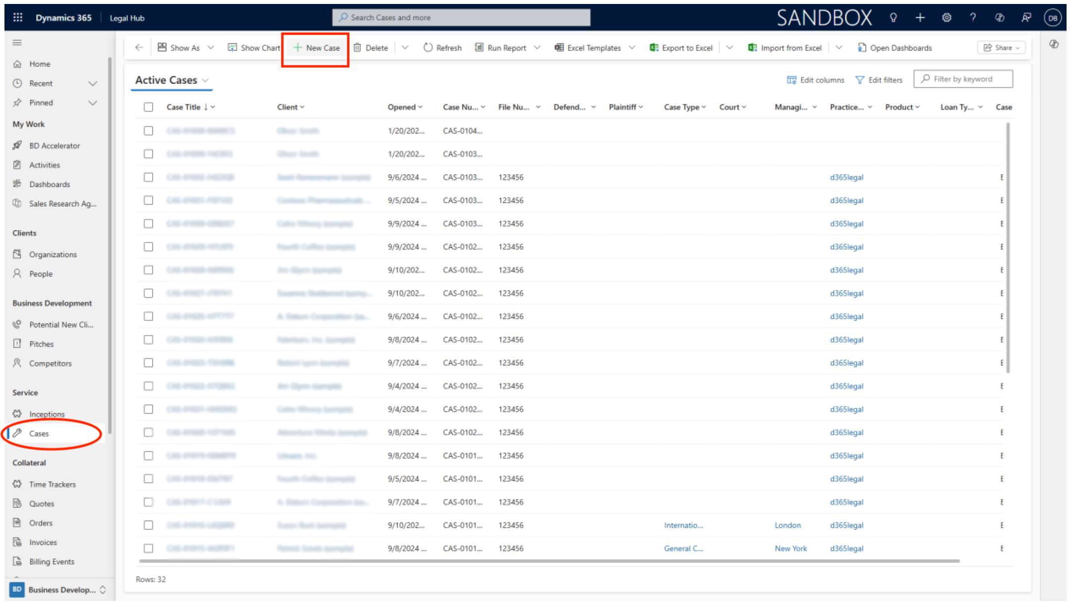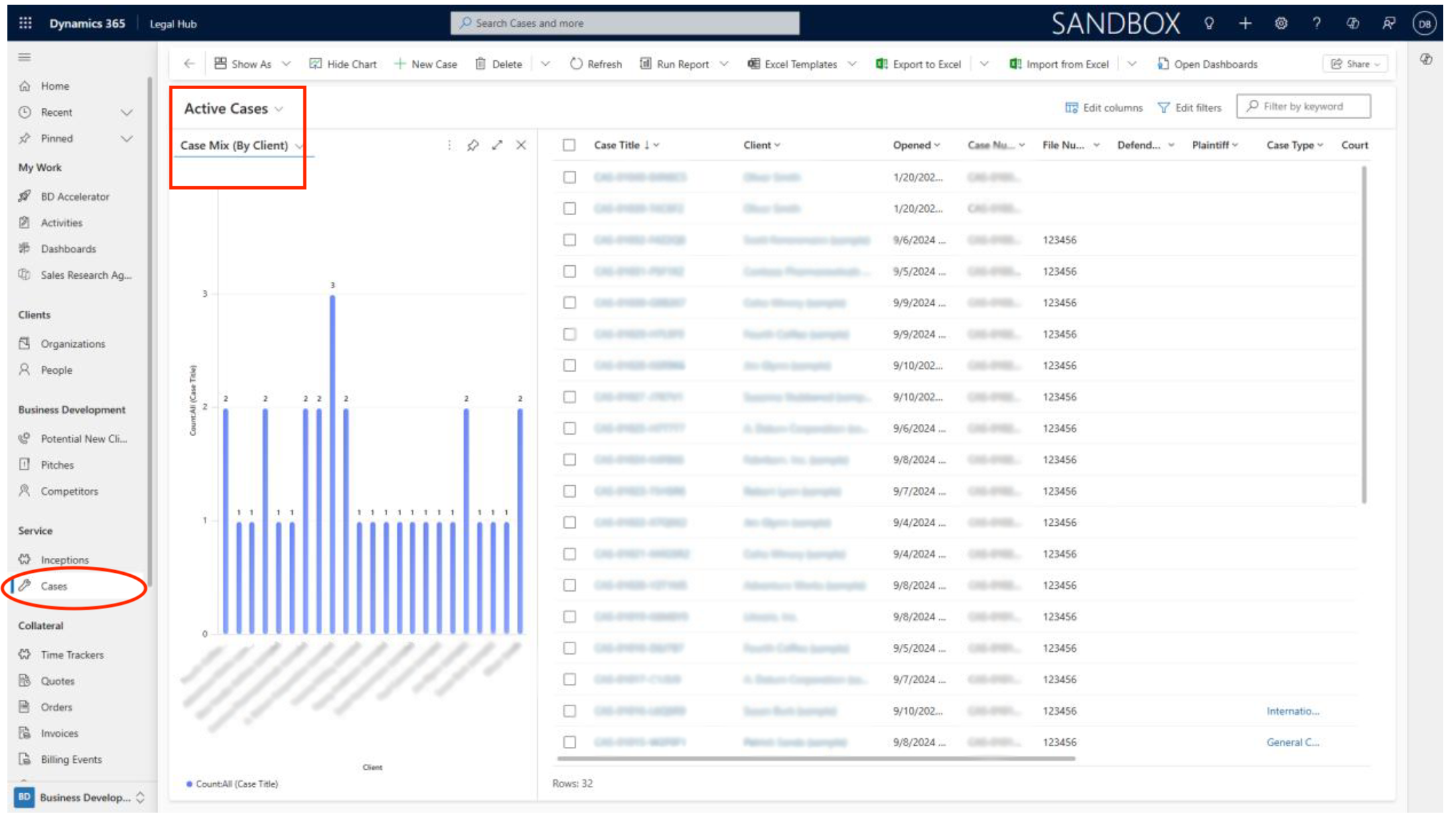 - Once authenticated, from the left-hand navigation menu, in Legal Hub locate and select Cases under the Service menu (as available in your environment).