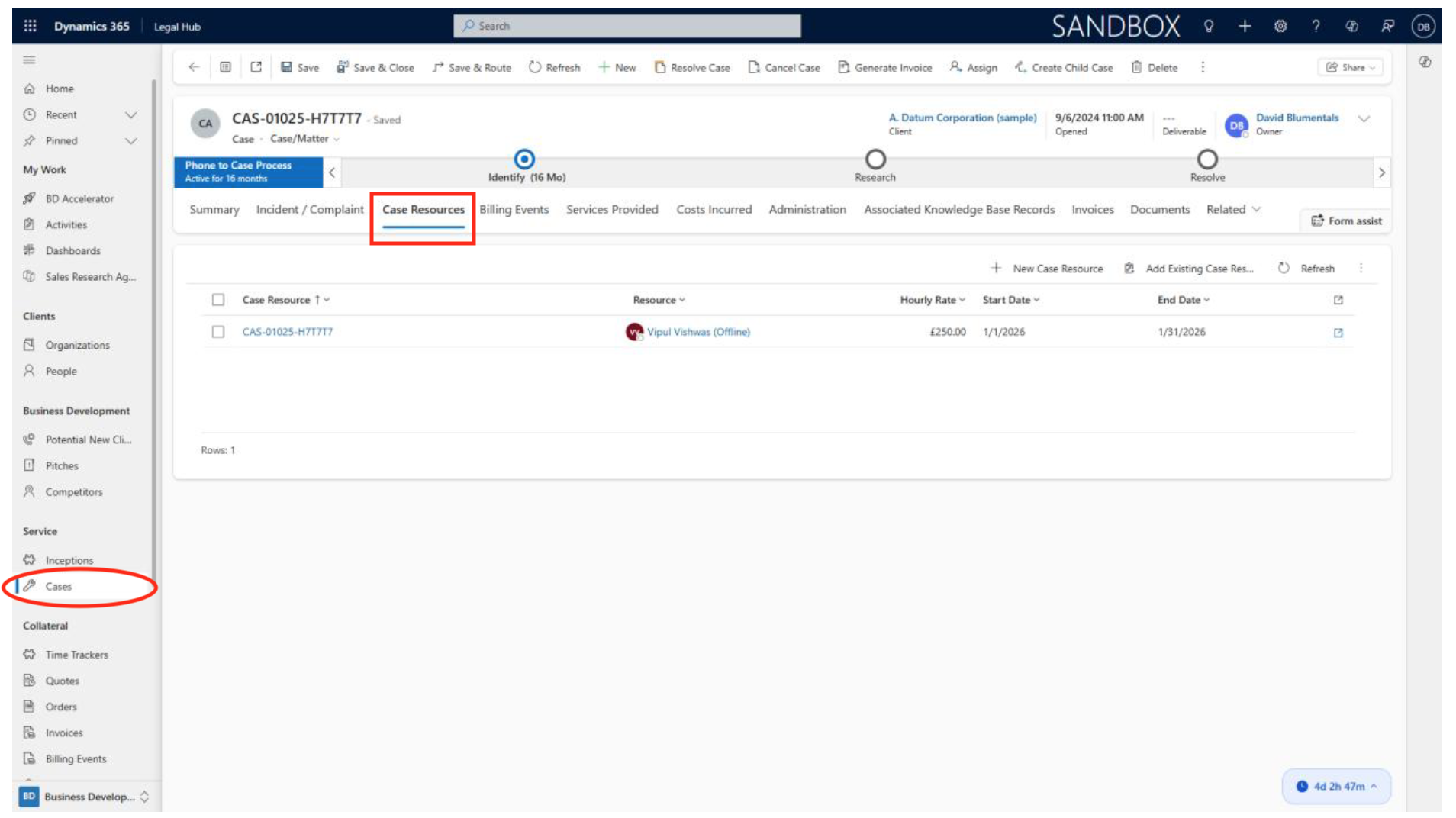 - Within the case, go to the Resources or Team Members tab.
