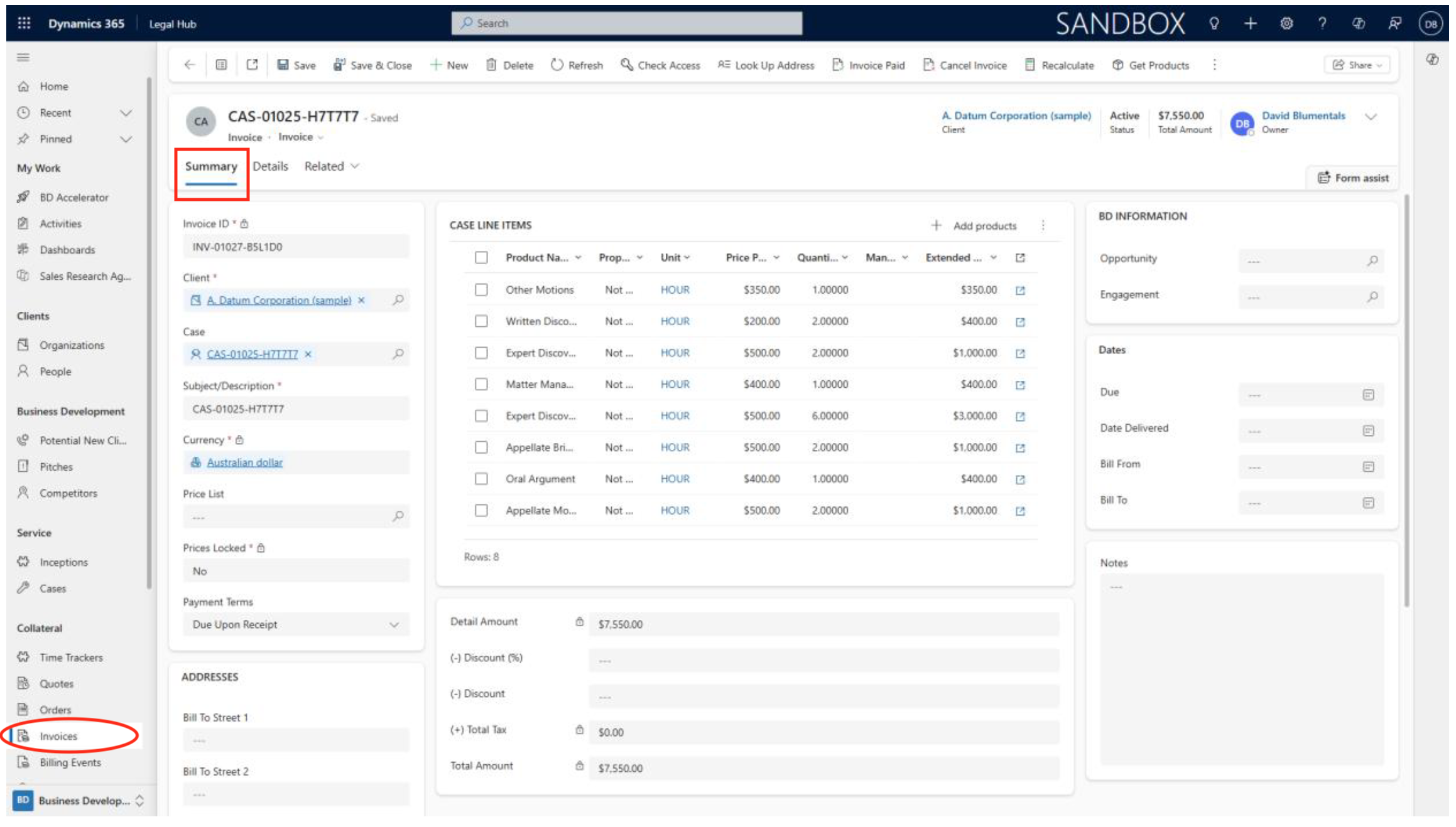 - Open the relevant case or matter from your grid.