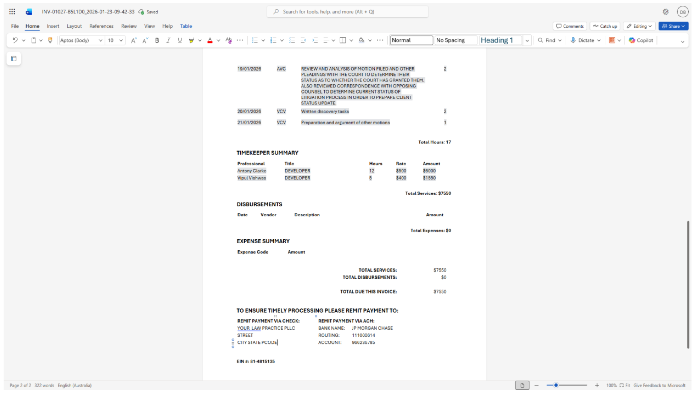 - Disbursements (e.g., “Courier charges”)