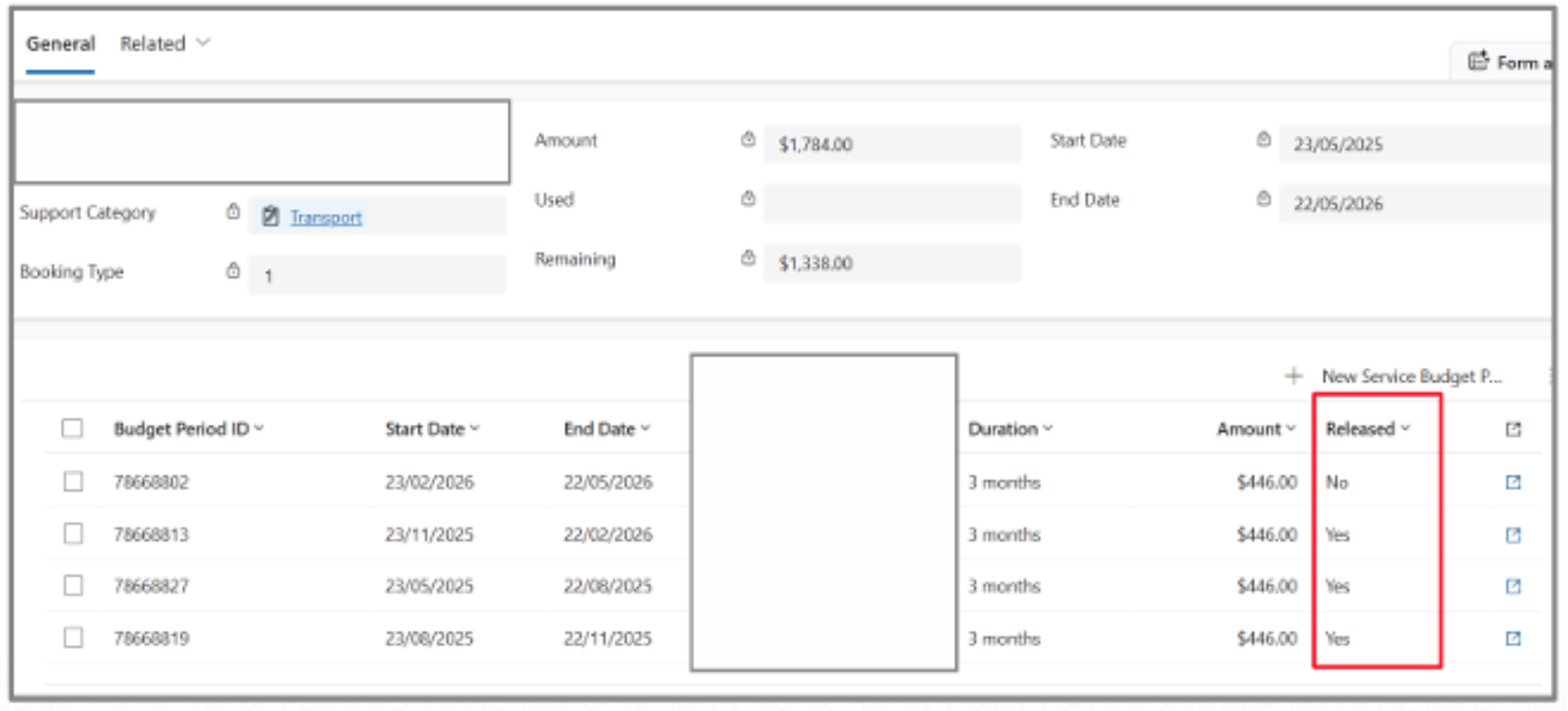 With Microsoft Dynamics 365, organisations can automate the retrieval and visibility of Service Booking Budgets by simply enabling NDIS Registered = Yes on the participant’s Account record. Once set, a scheduled background process runs daily to securely retrieve: