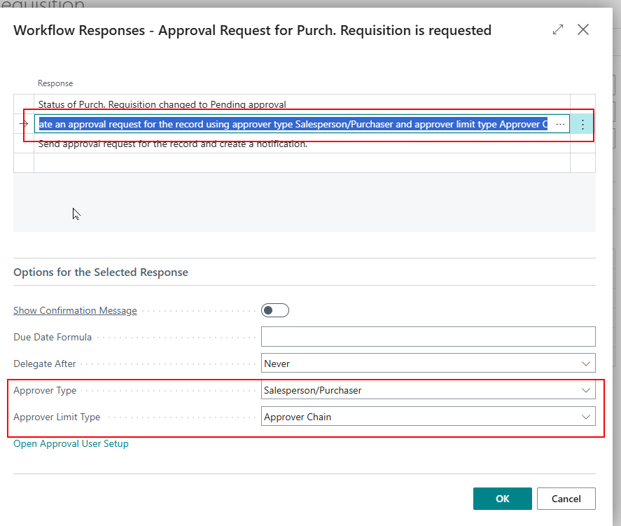 The Approver Type and Approver Limit Type must be updated as per the organisation policy and click on the OK button.