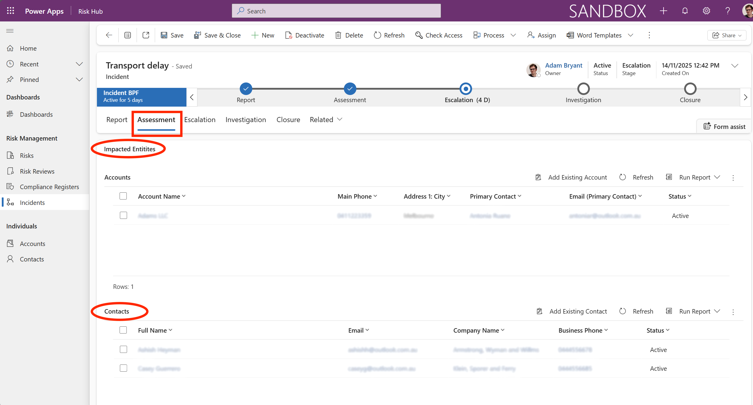 Link contacts to relevant risks, incidents, or activities via lookup fields for context and traceability.