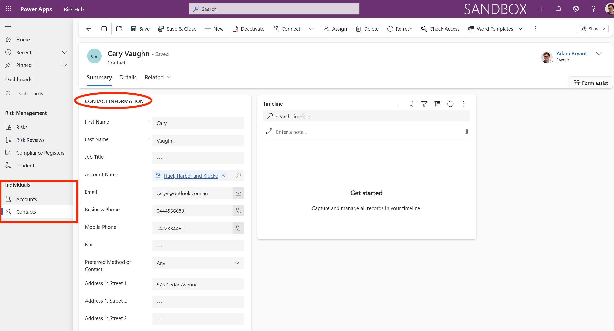 The Contact Management form is used to manage the details of individuals who are involved in or impacted by the risk management process.