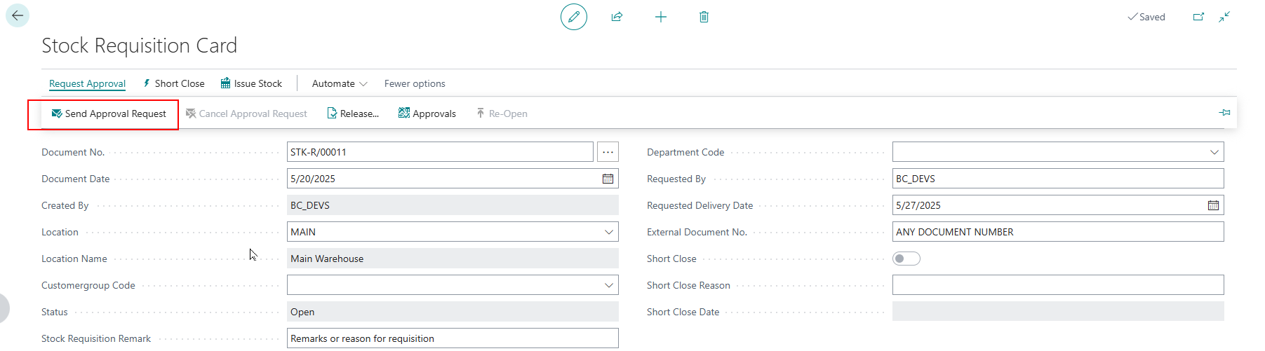 | 3 | Stock Requisition Remark | This is where the user can put in comments or remarks. |
