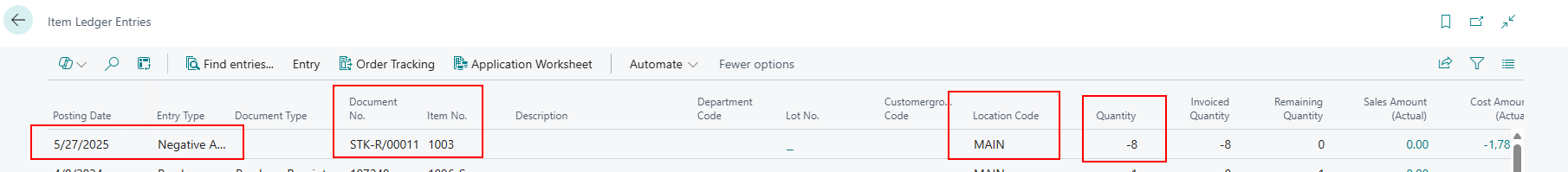 Check for item ledger entries, with entry type = negative adjustment. The following screenshots show the item ledger entries and general ledger entries impacted due to stock issue via stock requisition.