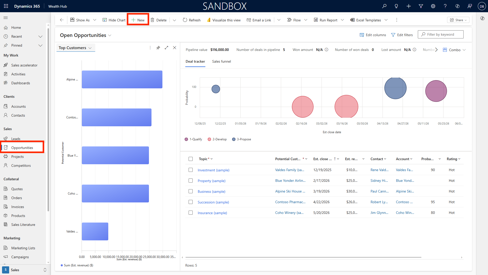 Click New Opportunity in the Opportunities module.