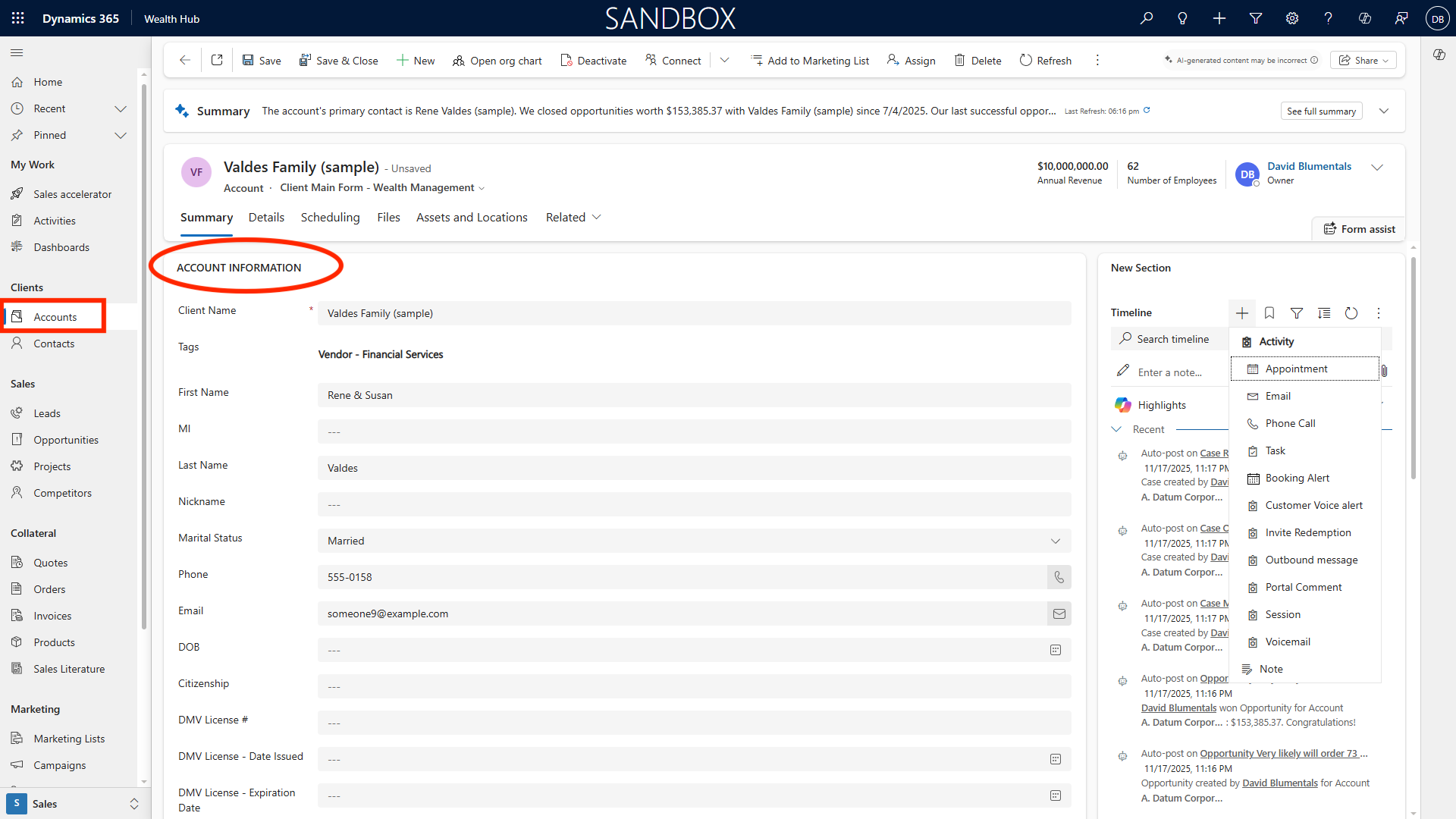Microsoft Dynamics 365 for Wealth Management is a robust CRM solution tailored for the unique needs of wealth management professionals, powered by Dynamics 365 Sales. It enables marketing and solicitation, efficient client relationship and pipeline management, seamless tracking of opportunities, as well as project, service and administration functions — all in one system working with Outlook, Teams and SharePoint. This guide delves into each feature, providing you with actionable insights, illustrative examples, and step-by-step processes to help you master the platform and maximize your productivity.